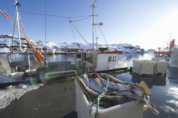 Aerial view of the main industrial port of Reykjavik, Iceland