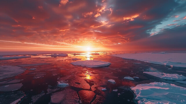 Hovering drone casting shadow over 2023 numerals on polar sea ice horizon