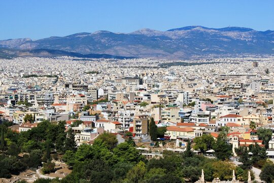 View of Athens city from Areopagus hill in Athens, Greece, October 9 2020.