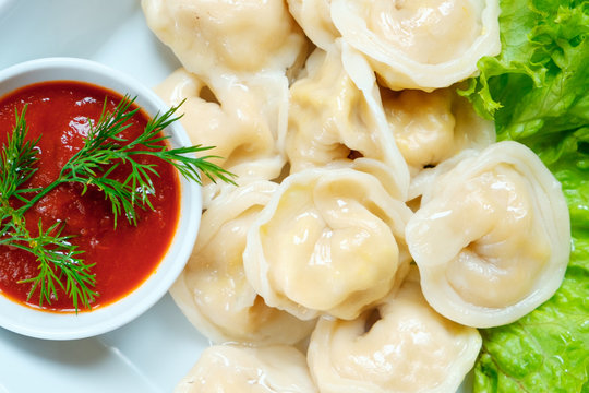 dumplings, pierogi before boiling - traditional Ukrainian food