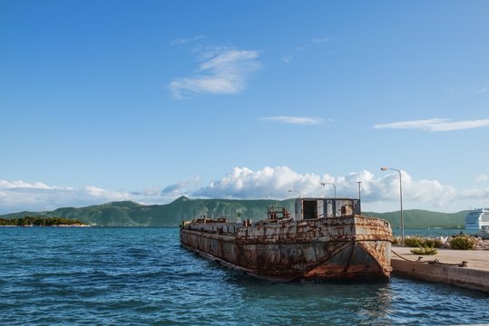 Artist copyist paint seascape with ship in ocean. Vaper smoke vape e-cigarette. Craftsman decorator draw as boat sail on blue sea with acrylic oil color. Draw finger, brush, knife palette. Indoor.