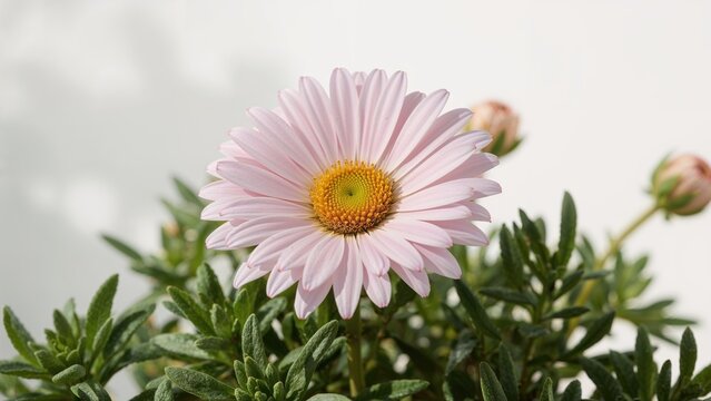 Sydney Australia, pale pink argyranthemum flowers with yellow centre