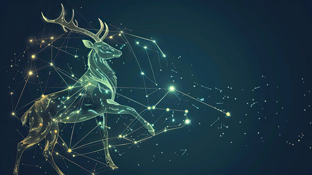 illustration of a ram depicting the Aries zodiac sign among stars in the sky