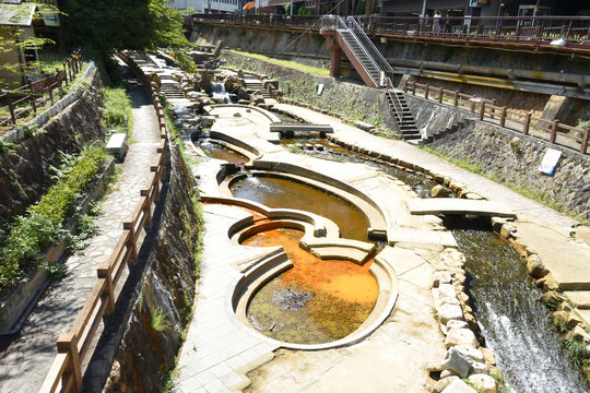 Japanese style public park with hot spring in Arima Onsen city, Kobe, Japan