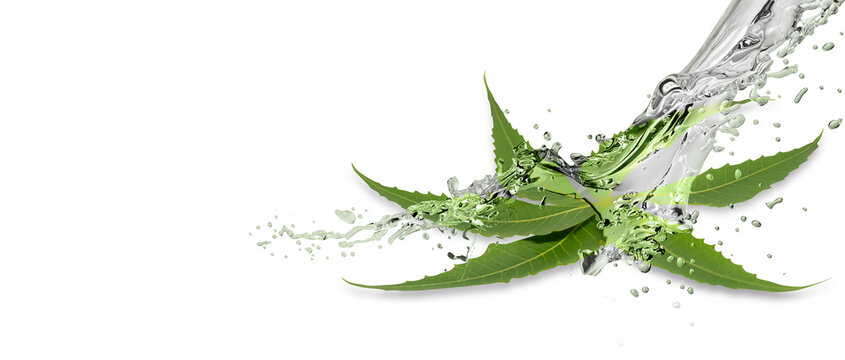 neem leaves splash with water