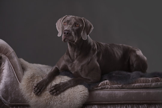 A regal dog sits on a plush velvet throne, wearing a small crown, looking majestic and noble in an opulent setting,  aristocratic,  pampered