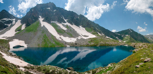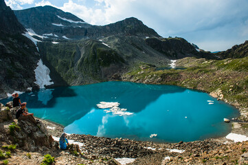 Mountain lake Zaprudnoye, tourist resort Arkhyz.