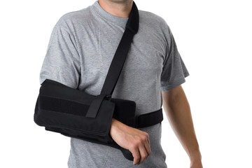 Man wearing an arm brace over white