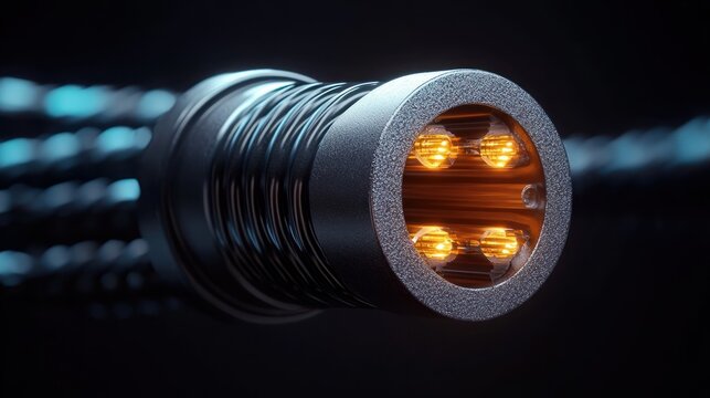 Man holding a cross section of a power cable, showing its layers and wiring against construction background, concept of urban development.