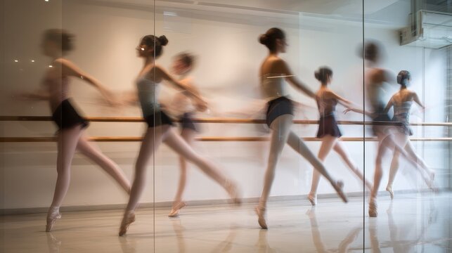 Ballet barre stretching dancer blending classical movement with digital binary overlay