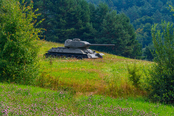 T-72 tank testing at proving ground overall view with hull and turret details.