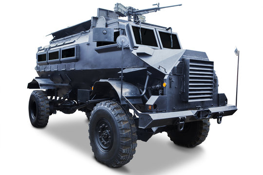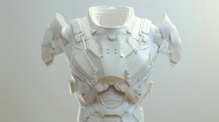 Close-up of futuristic humanoid robot torso with AI label and white armor suit.