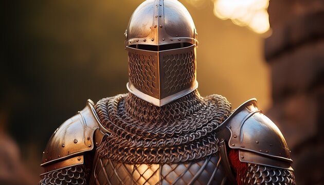Medieval knight torso armor made of linked iron rings. Chain mail