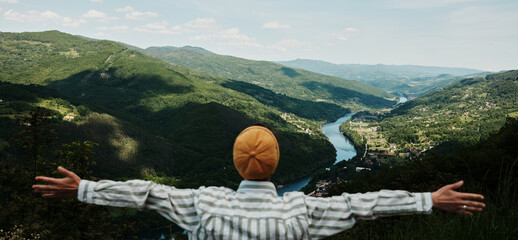 Hands, community and link team together global community of cooperation on blue sky. Group diversity in volunteer partnership, social solidarity or collaboration friends of circle arms and teamwork