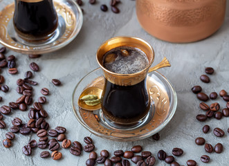 Middle Eastern-Style black coffee with cardamom  in armudu glass