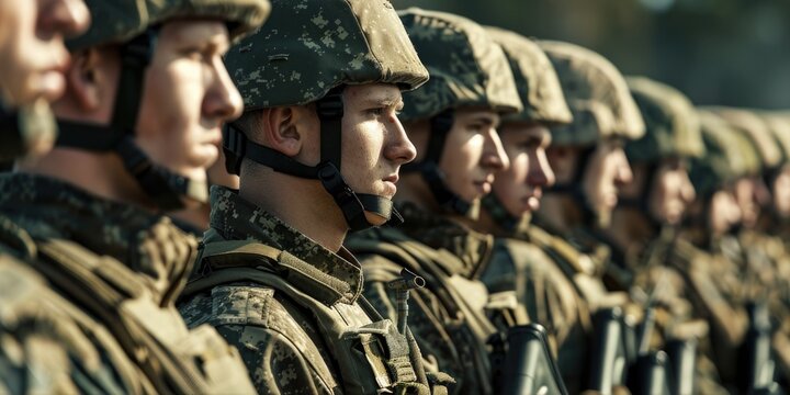 A group of soldiers in full army gear, each with a personalized name tag displayed prominently