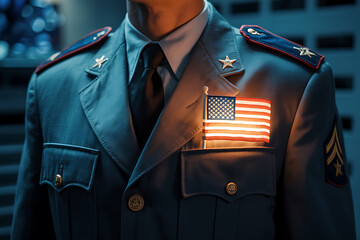 Close up of a military uniform with an american flag showcasing patriotism and service with honor representing the dedication and sacrifice of the armed forces in defense of freedom