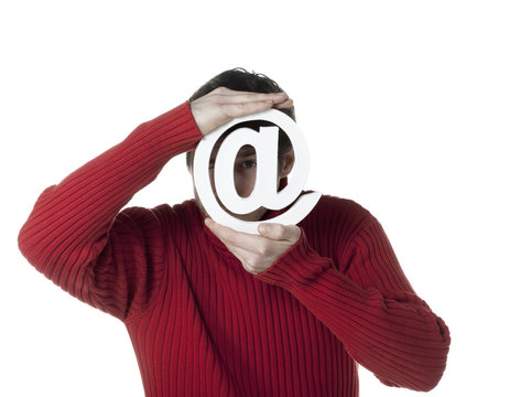 homme et arobase géante
