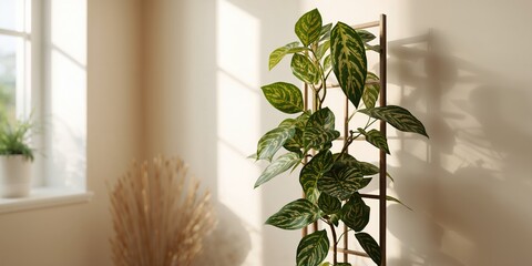 Cercestis Mirabilis patterned leaves houseplant, decorative climbing aroid used in indoor plant displays, Houseplant care