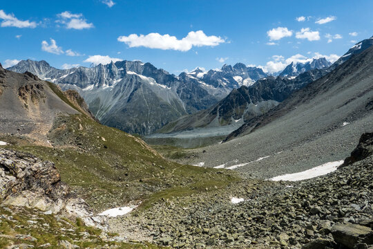Picturesque mountain landscape with glacier Glacier de Piece, Arolla, Valais, Western Alps, Switzerland