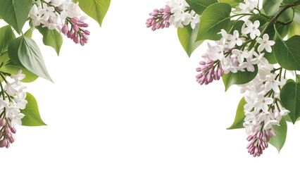 A beautiful floral arrangement with white and purple lilacs on a clean white background