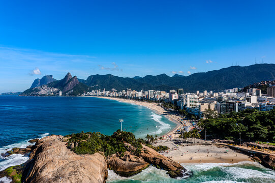 Ipanema beach and Arpoador beach with  in Rio de Janeiro, Brazil. Ipanema beach is the most famous beach of Rio de Janeiro, Brazil. Cityscape of Rio de Janeiro.