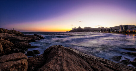 Ipanema Beach and Two Brothers (Dois Irmaos) Mountain at sunset - Rio de Janeiro, Brazil