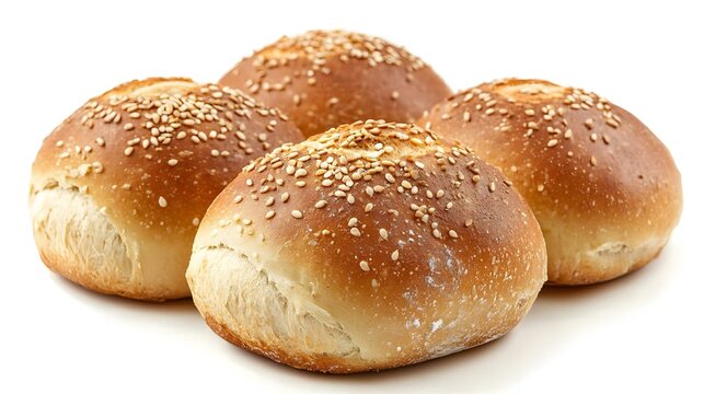 Freshly baked bread rolls on rustic wooden board with wheat stalks