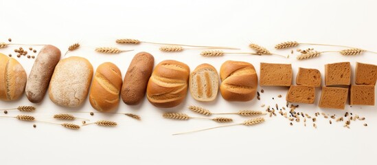 Arrange sliced bread on a wooden cutting board with room for a design in a copy space image