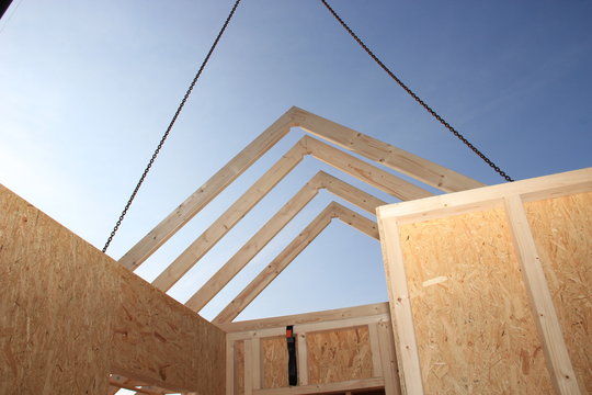 carpenters setting up prefabricated framework