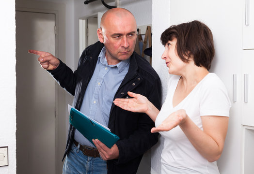 Businessman trying to collect arrearages from woman at home door