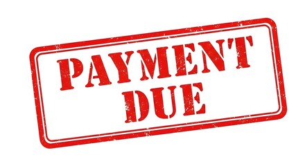 Red and white rubber stamp clearly indicating payment due with distressed texture