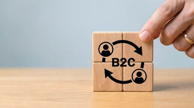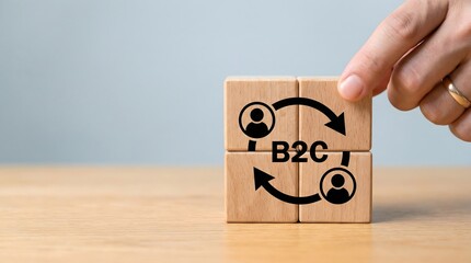 Hand interacting with a wooden block featuring a blue circular arrow symbol