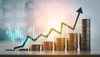 Rising bar graph with statistics in blue background symbolizing economic growth