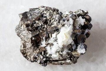 sample of raw arsenopyrite mineral on white marble