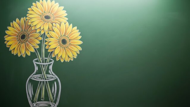 Yellow flowers in vase on chalkboard background
