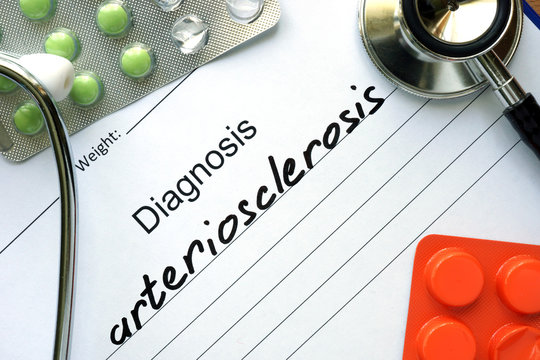 Diagnosis arteriosclerosis and tablets. Medicine concept.