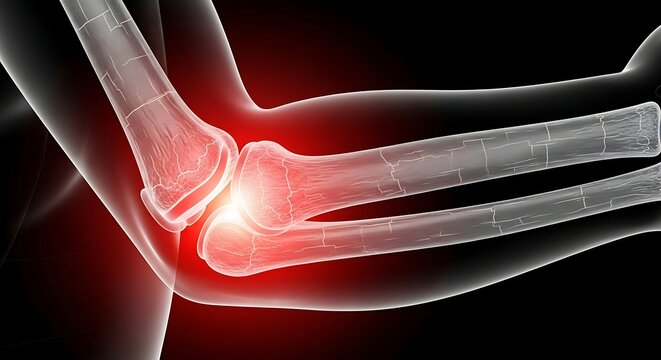 Medical Illustration of Elbow Joint Injury with Inflammation and Pain
