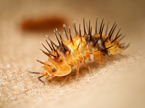 Cloporte Laureola sp. “durian” – macro naturaliste d’un isopode terrestre orangé aux épines noires, famille Armadillidae