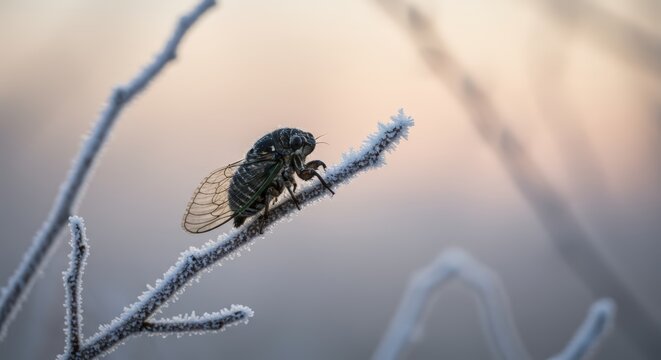 Frosted branch with insect
