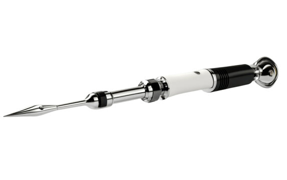 A veterinary surgeon starts an arthroscopy operation on a dog's knee. The surgeon cuts the skin on the dog's knee to insert the arthroscope into the cavity of the knee joint. Dog arthroscopy concept.