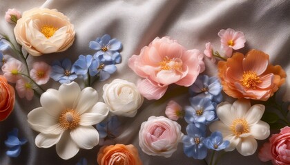 Delicate Flowers Arranged On Textured Fabric Create Serene Arti
