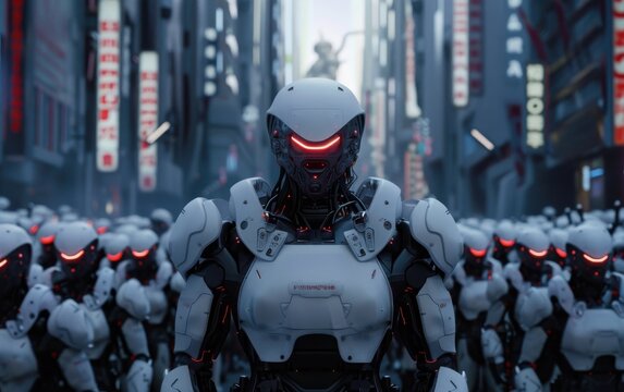 Robot operated intelligent device office scenarios in the future world - concept of artificial intelligence