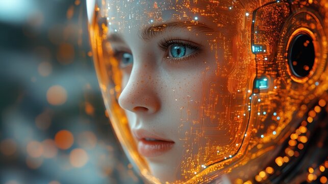 A compelling visual exploring the intricate connection between human identity and advanced artificial intelligence, symbolizing technological progress and humanity's future