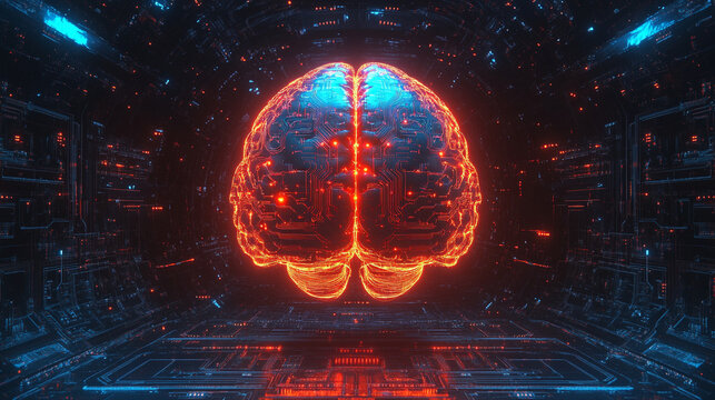 Futuristic ai brain with digital circuit design