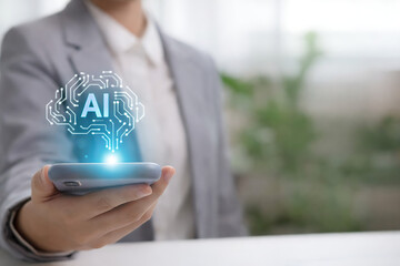 A futuristic concept of artificial intelligence on a smartphone, showcasing advanced technology and the integration of ai in modern communication