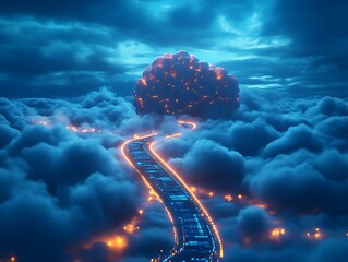 AI Cloud Computing A 3D illustration with a glowing cloud symbolizing artificial intelligence