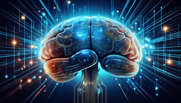 Artificial Intelligence Brain With Digital Data Overlay Images
