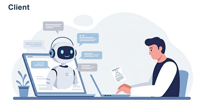 AI chatbot providing customer support to a client, modern digital assistance with virtual assistant on laptop screen for online businesses and tech solutions