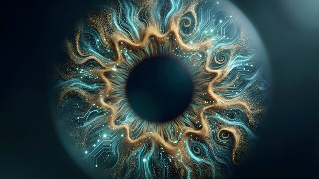 Abstract digital eye with circuit board iris pattern